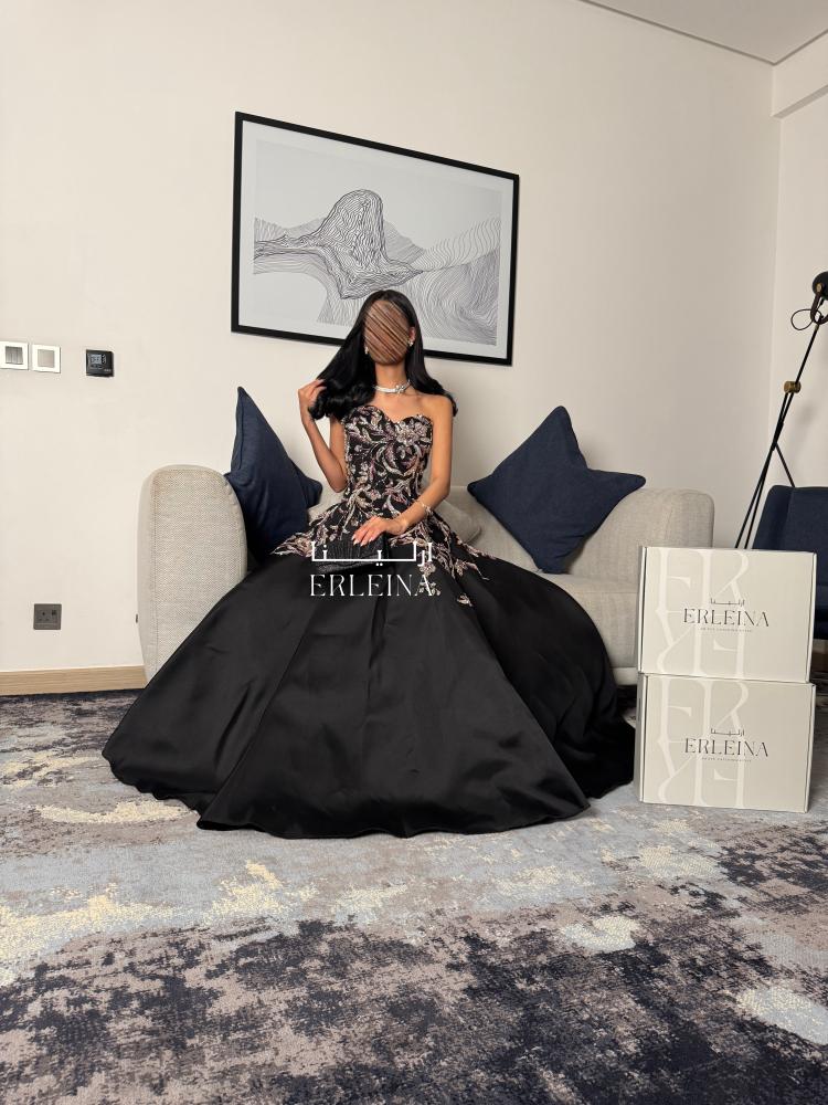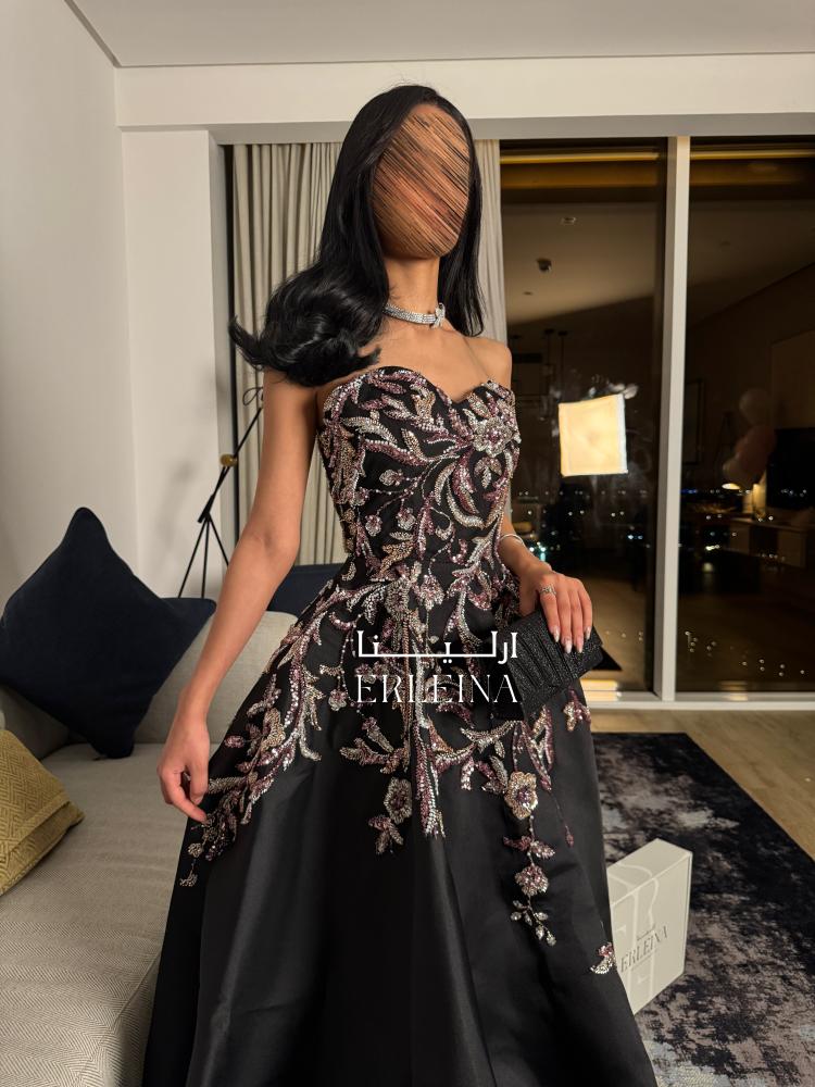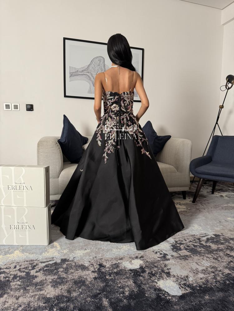 فستان اسود فخم بتطريز فاخر ولمّاع