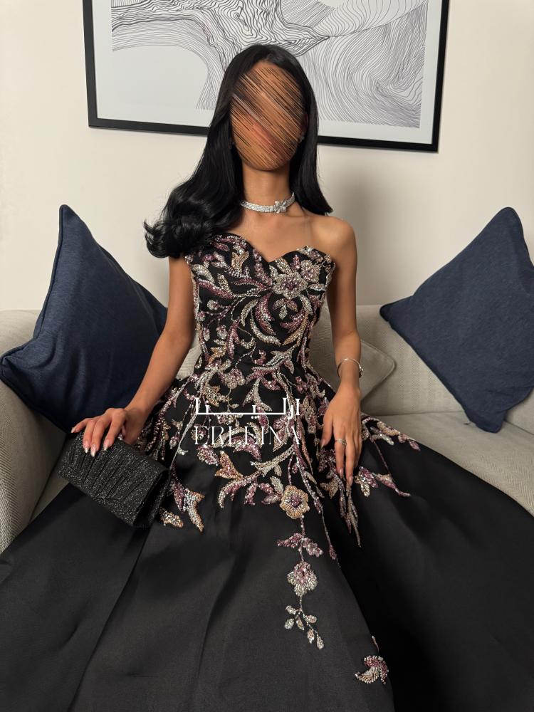 فستان أسود ملكي بالتطريز الفاخر – أناقة تأسر الأنظارفخامة الأسود تلتقي بسحر التفاصيل