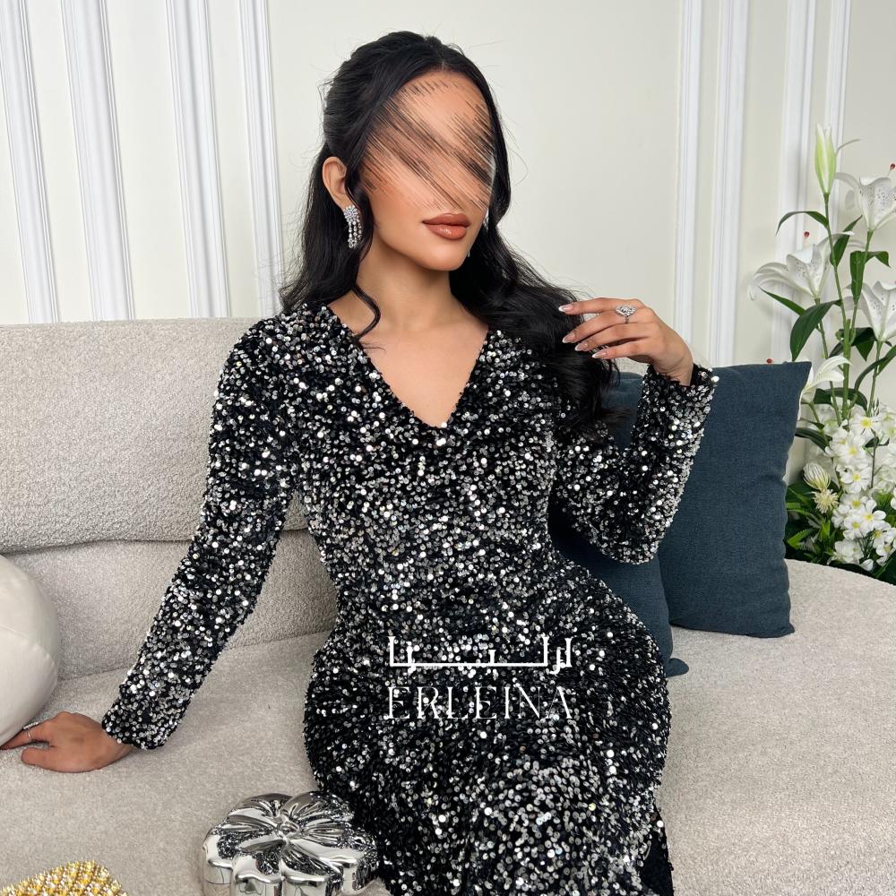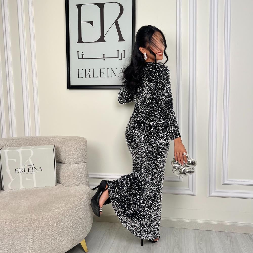 تألقي بفخامة مع فستان اورقيت فضي بأكمام من ارلينا. تصميم أنيق وجذاب من اختيارات "نوف فاشن" منسوج من المخمل الأنيق ومزين بالترتر الفضي البراق لطلة ملفته. فستان سهرة فخم بقصة أنثوية فاتنة يميز حضورك.