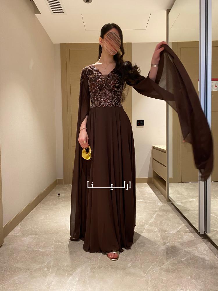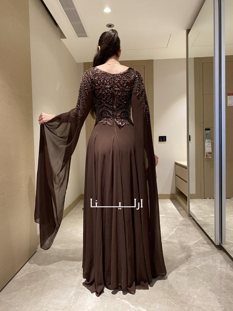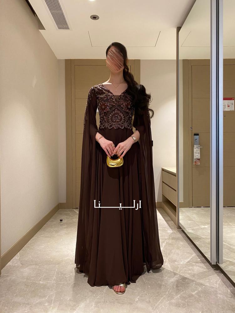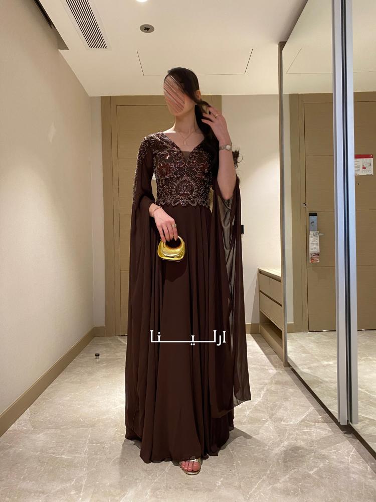 نوع القماش : شيفون جورجيت + صدر شك سهرة + بطانه كامل تفته سيلا .