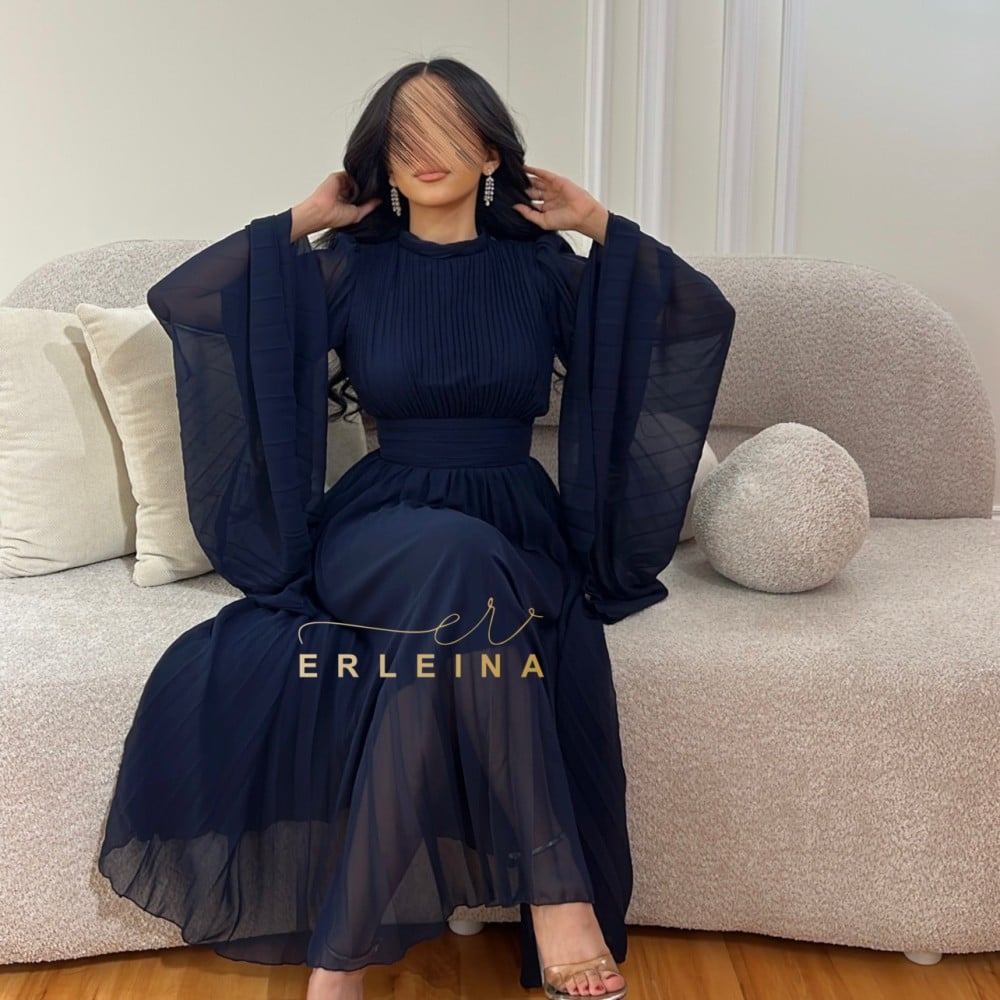 احظي بطلة فخمة وراقية مع فستان ايلان كحلي، فستان شيفون طويل بكسرات، تصميم راقي من تصاميم ارلينا المميزة. فستان ايلان كحلي قطعة استثنائية تجملك في كل مناسبة.