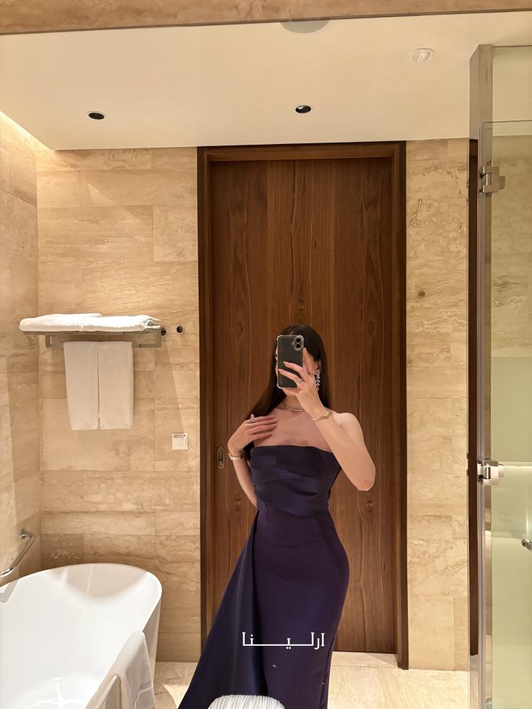 - الجزء العلوي: تصميم توب فاخر يلتف حول الصدر بأناقة لينسدل من الخلف ليمنحك هالة ملكية تلفت الأنظار.