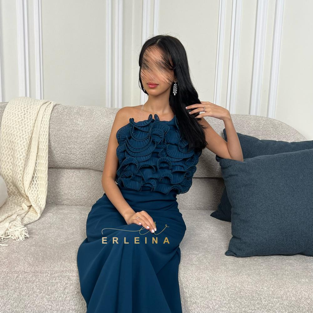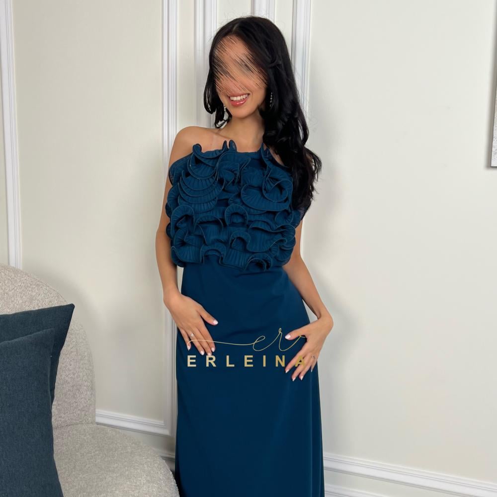 - فستان باللون البترولي معتنى بتفاصيله منسوج من قماش الليكرا الاسترتش الفاخر بجودة عالية.