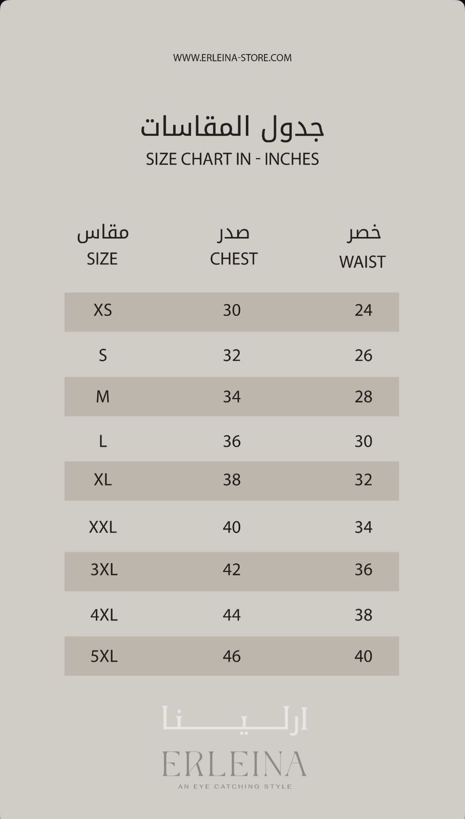 - المقاسات : ( XS,S,M,L,XL,2XL،)