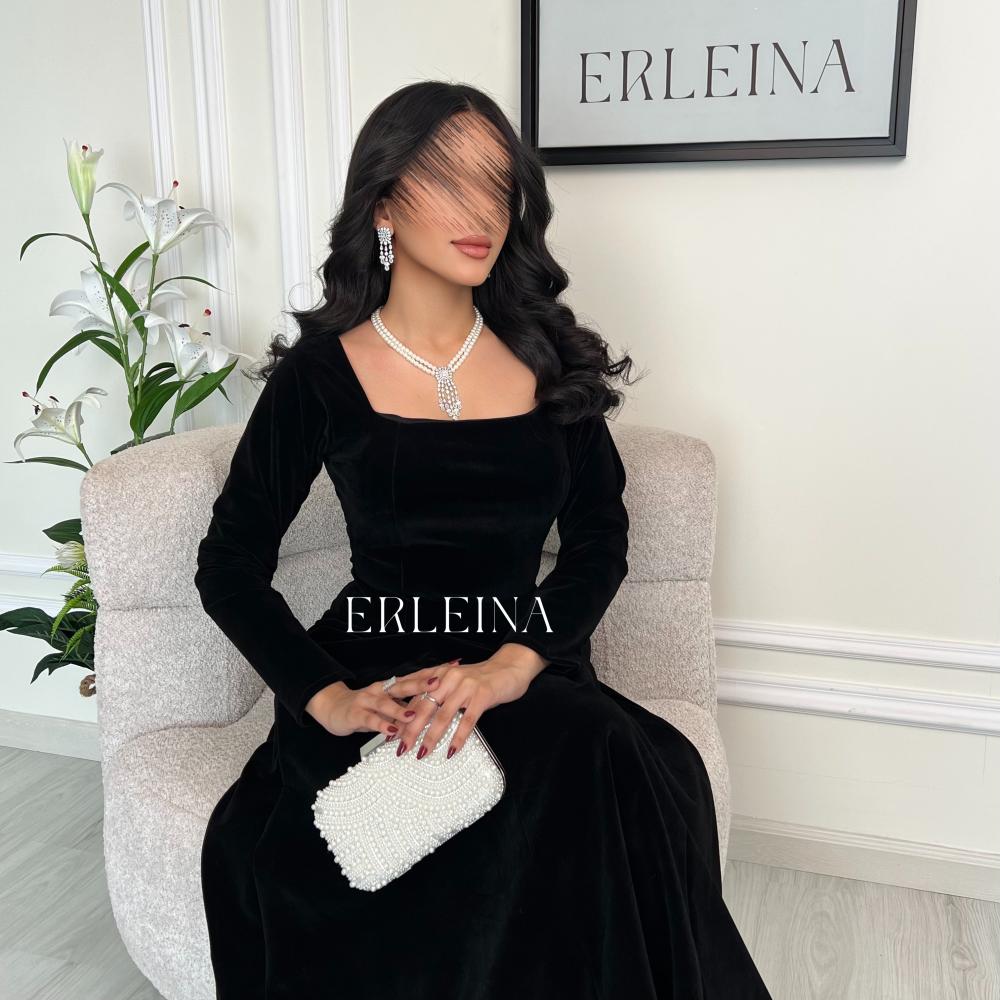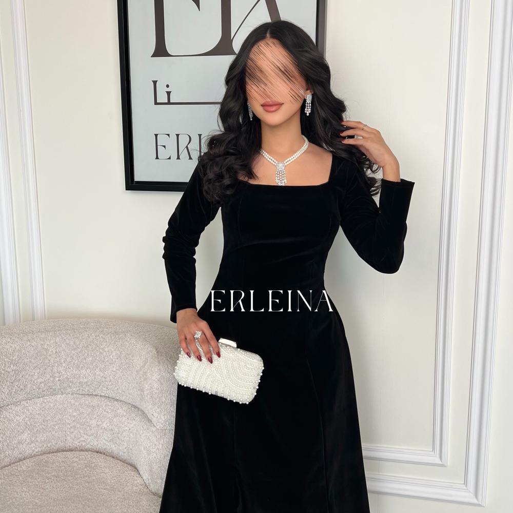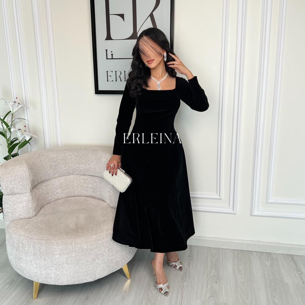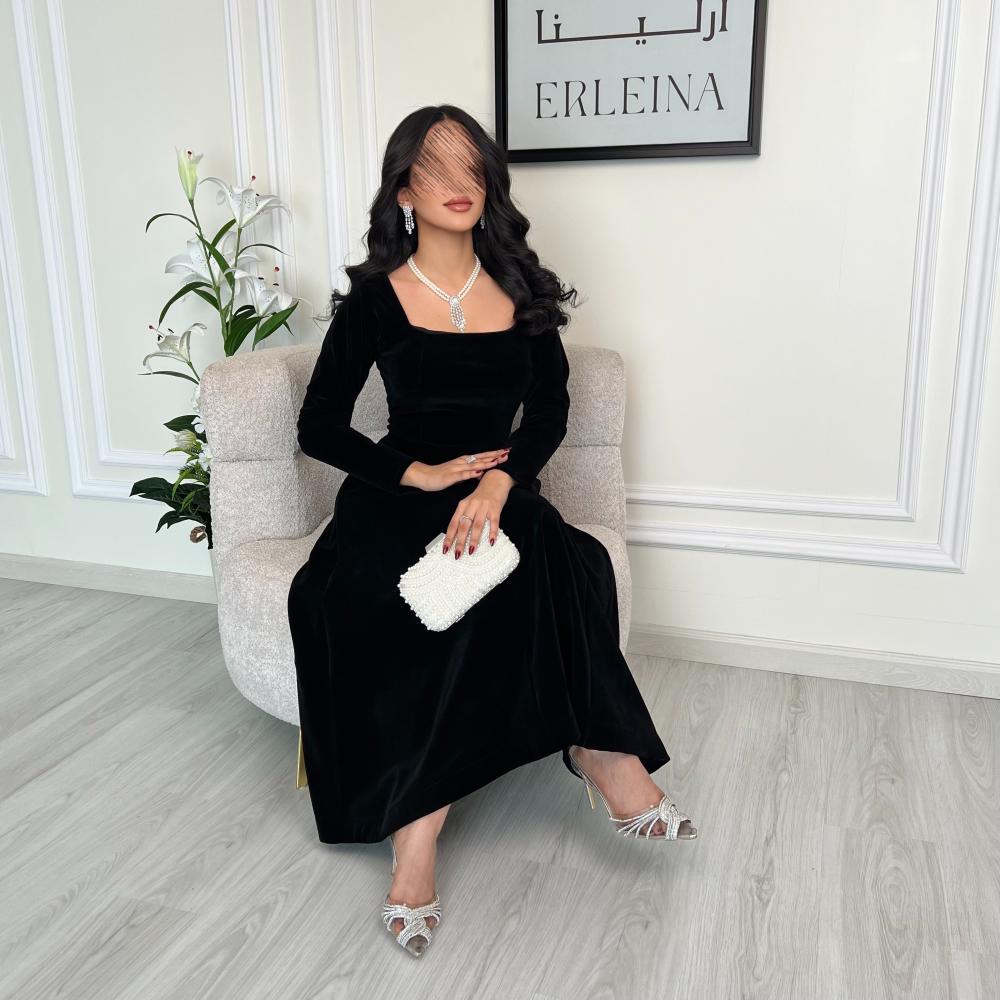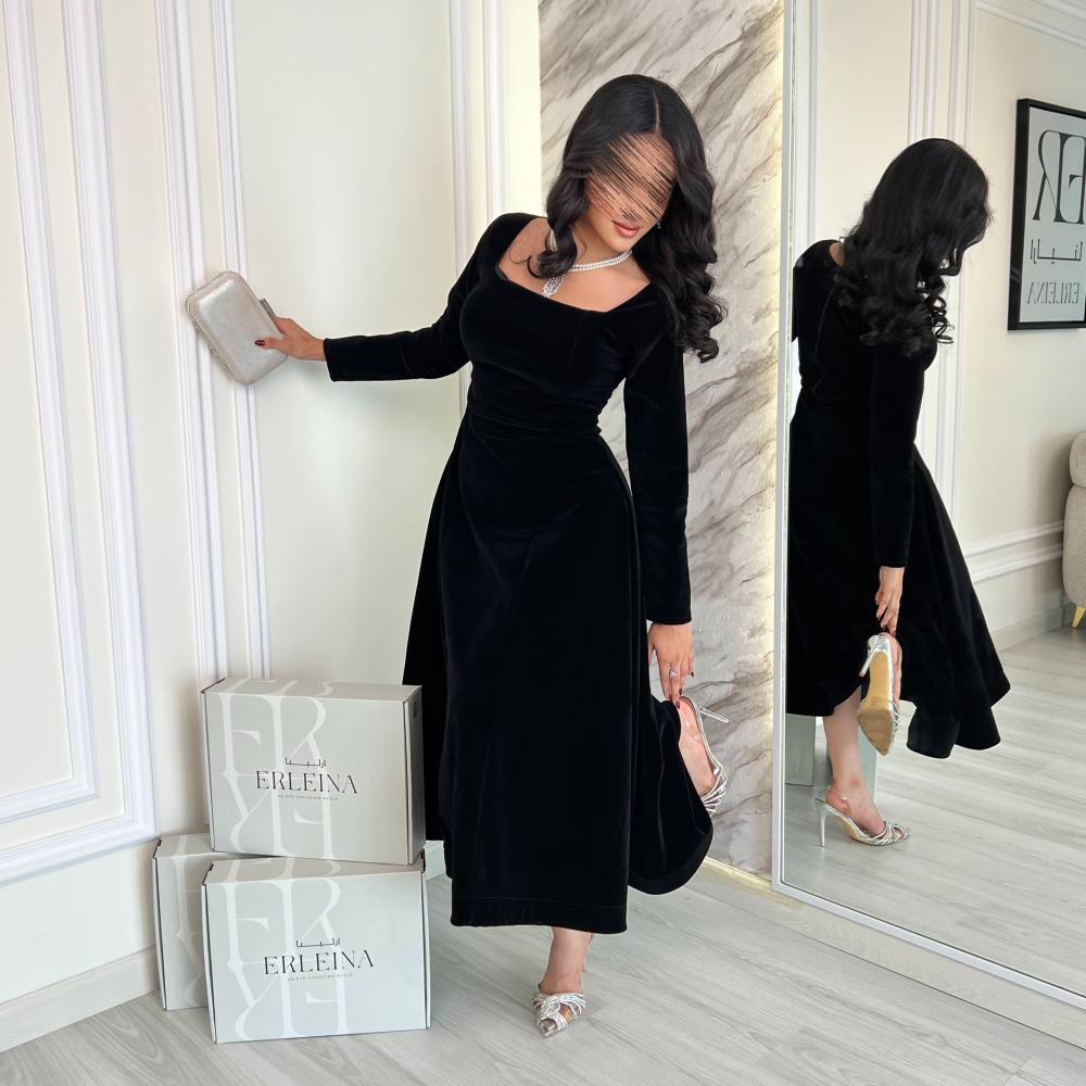 - فستان أسود ناعم بقصة أي لاين الأنثوية، تبرز قوامك بشكل طبيعي وجذاب، وتمنح جسمك توازن ملكي.