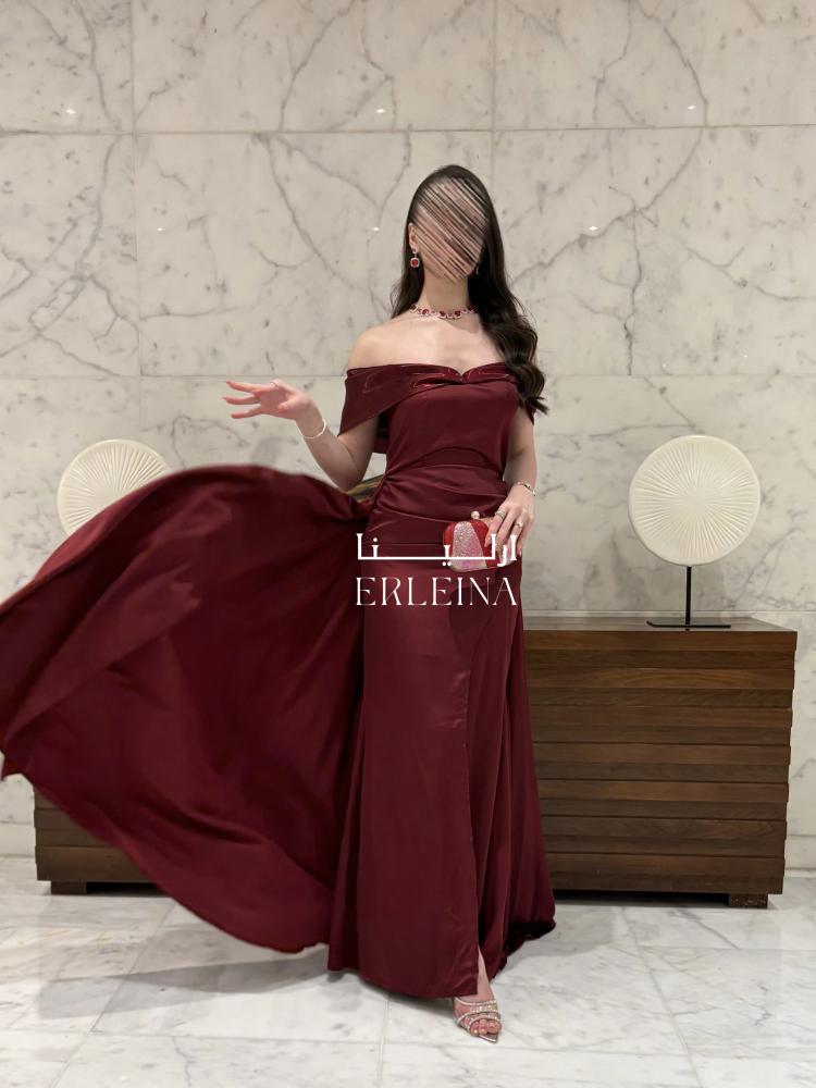 فستان سهرة ناعم وفخم بلون عميق وملفت صُمم بعناية لتكوني نجمة الحفل في أي مناسبة.