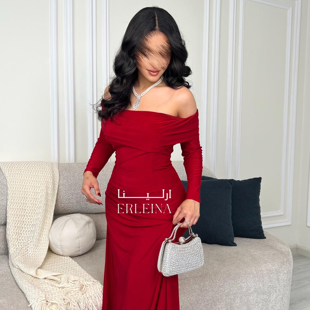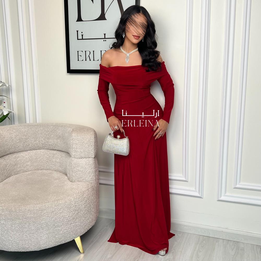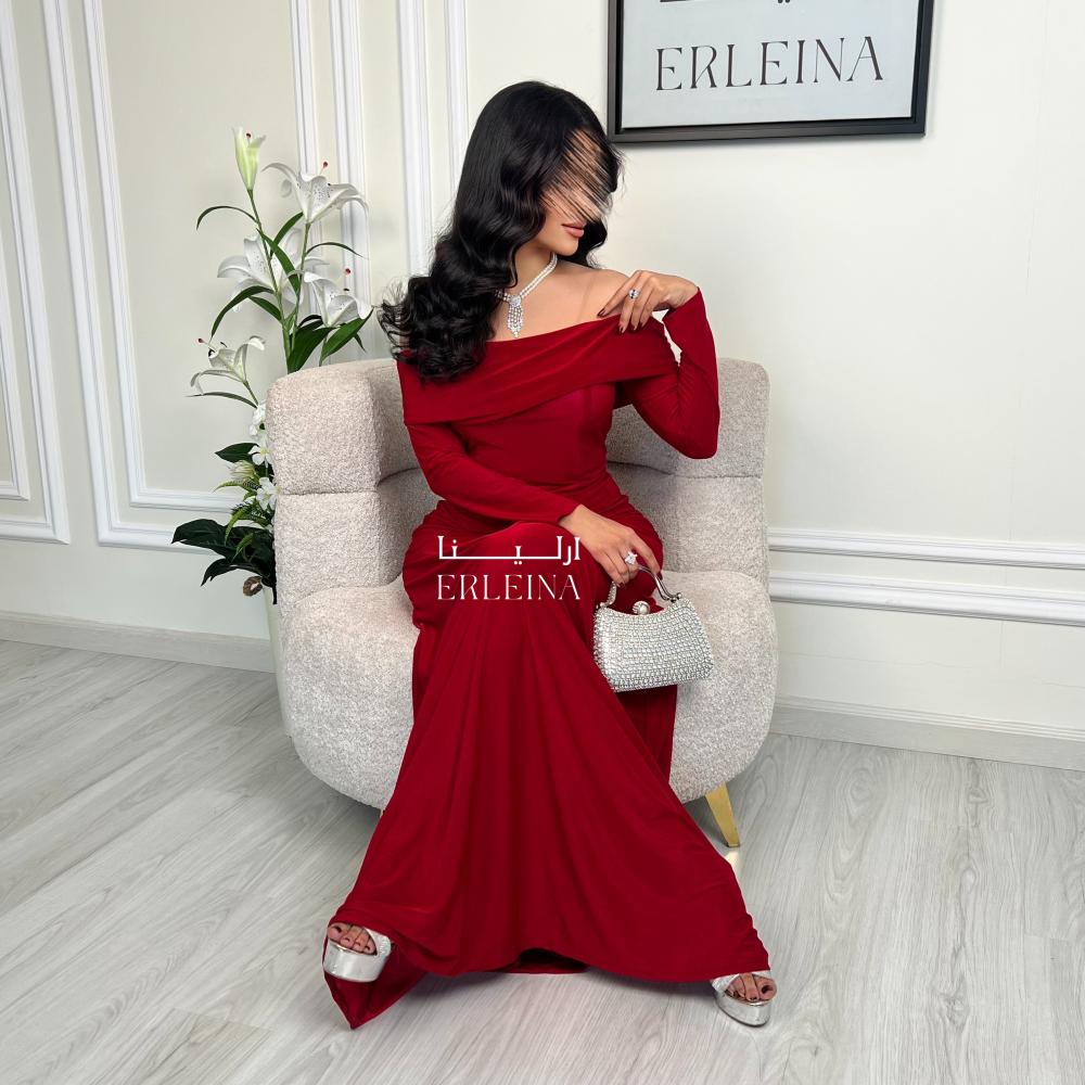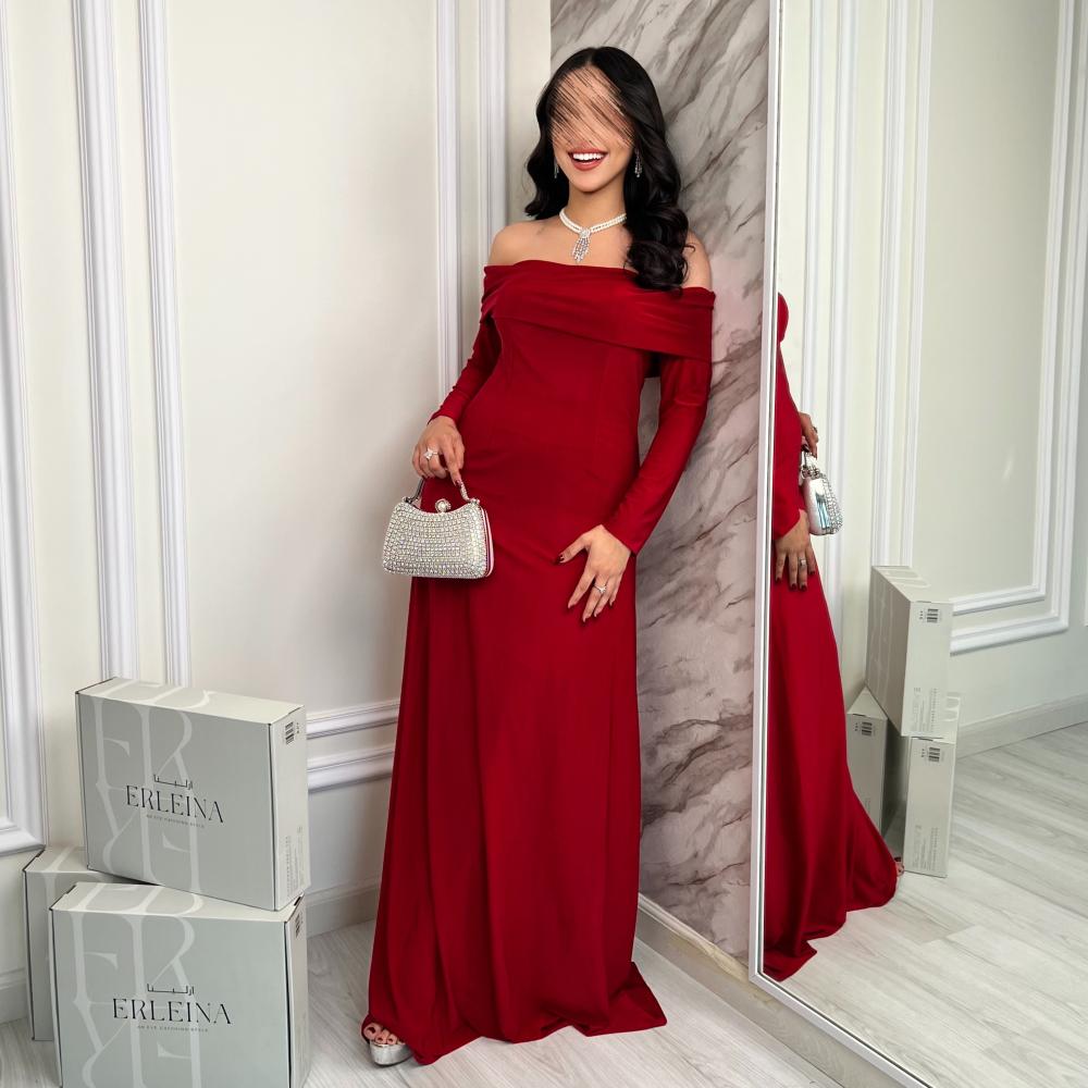 تصميم ناعم يعكس جمال الكتفين بأكمام طويلة أوف شولدر، مع ثنية أنيقة على الصدر تضفي لمسة كلاسيكية فاتنة.