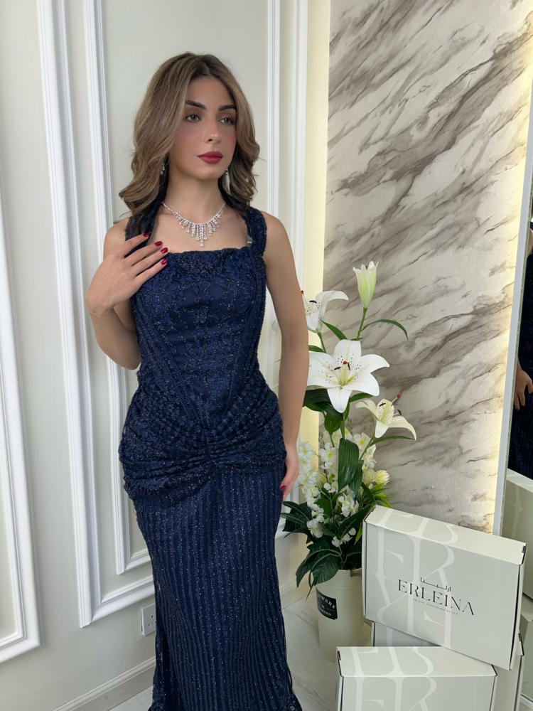 تألقي بسحرٍ يخطف الأنظار مع فستان لميسة الكحلي الراقي من ارلينا. فستان كحلي طويل يعانق القوام برقة ونعومة ليمنحك حضورًا يشع أناقة وفخامة ملفتة للانتباه.