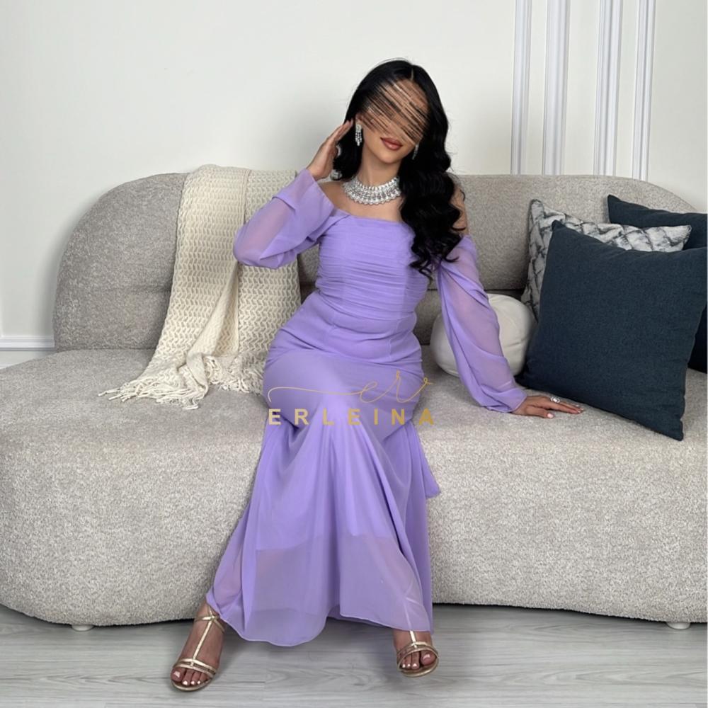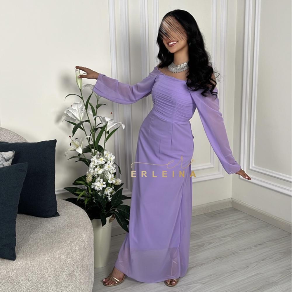 أبرزي أنوثتك ودلالك مع ارلينا، فستان موف شيفون أنيق صمم ليبرز أنوثتك ويمنحك هالة من الرقة والنعومة، قطعة مميزة تستحق الاقتناء.