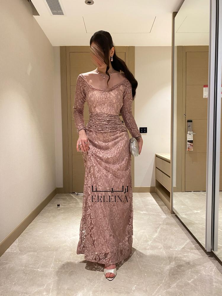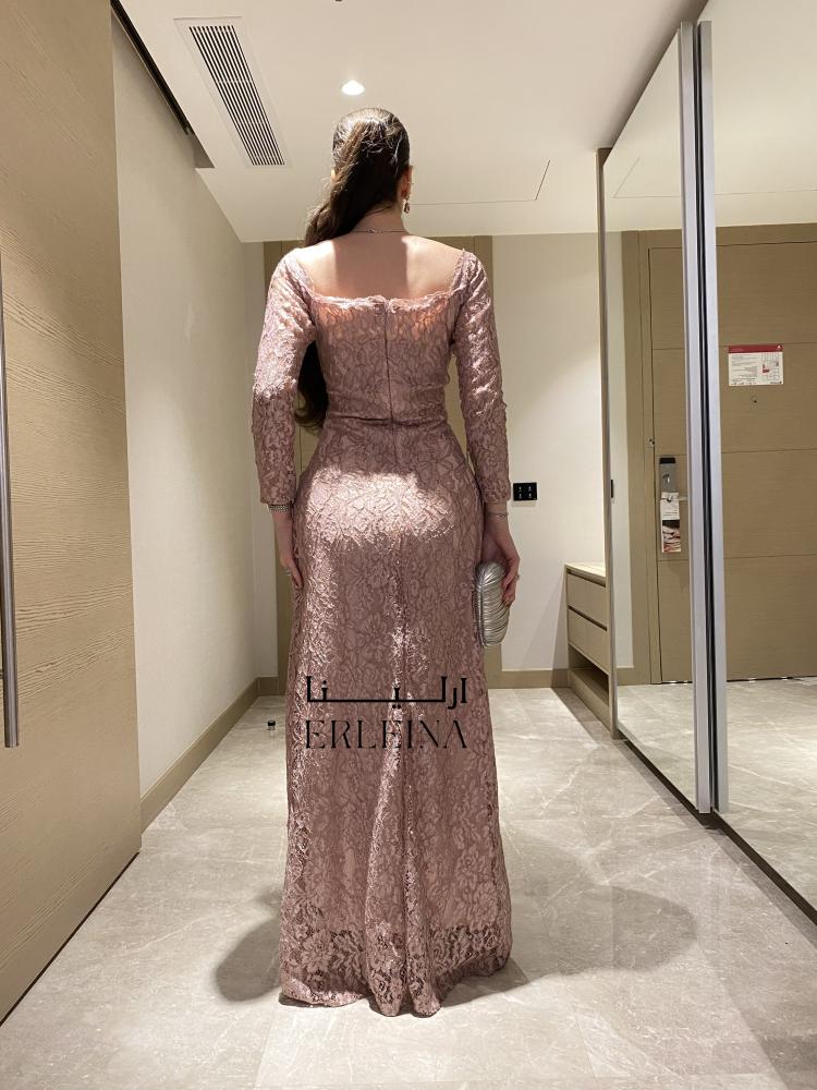 • الخامة واللون: فستان لون لحمي منسوج من الدانتيل الراقي بلون ناعم يمنحك طلة ناعمة تفيض أنوثة ورقيًا.