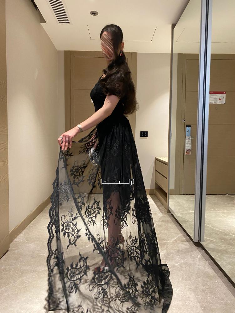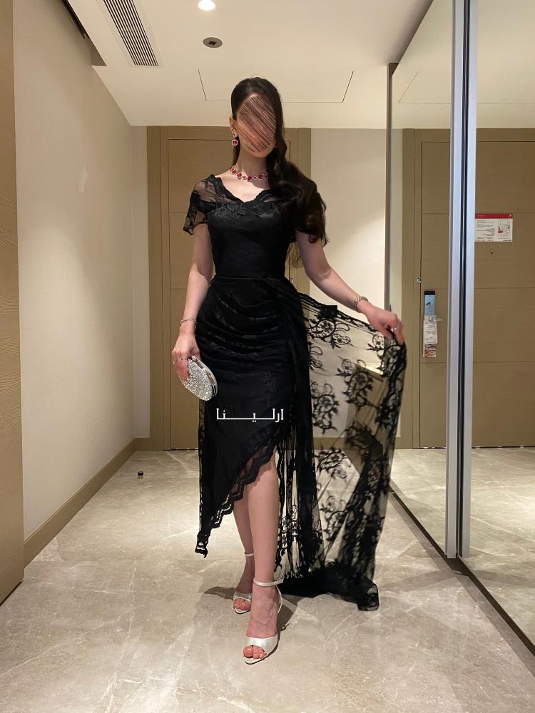 - الخامة واللون: فستان أسود ناعم منسوج من قماش الدانتيل الأنثوي الرقيق بلون ملكي يمنح بشرتك إشراقة جذابة.