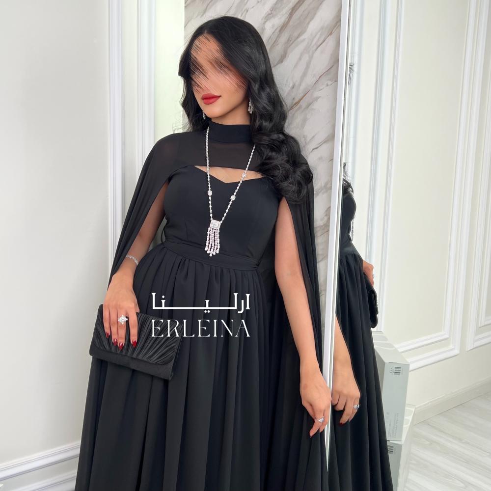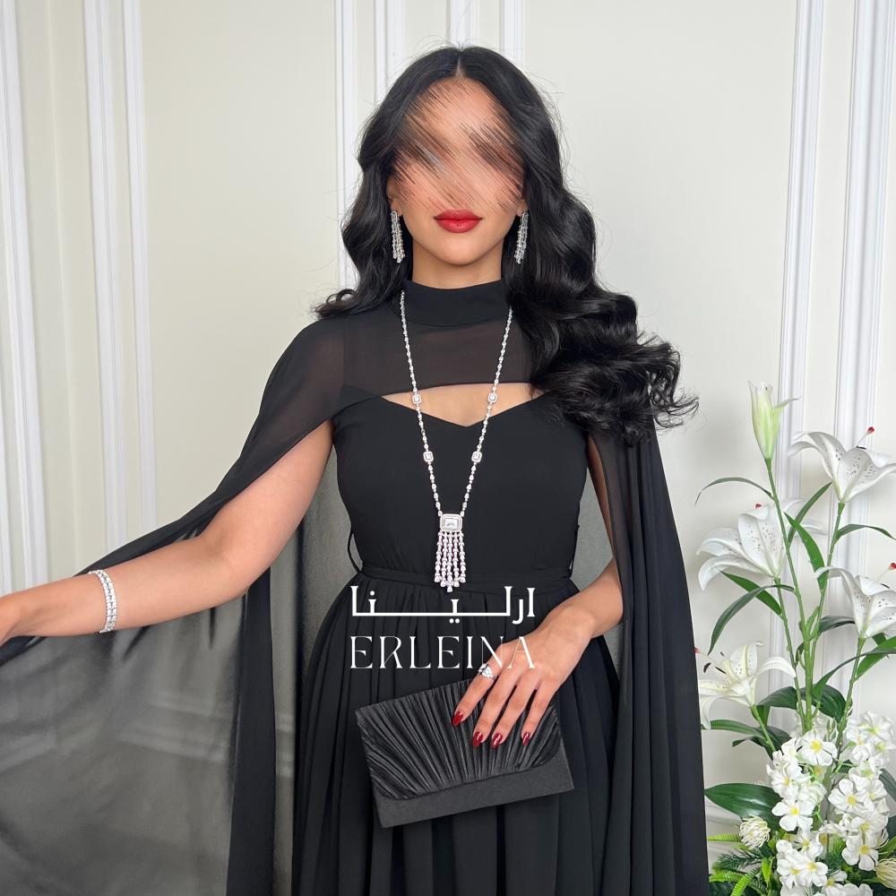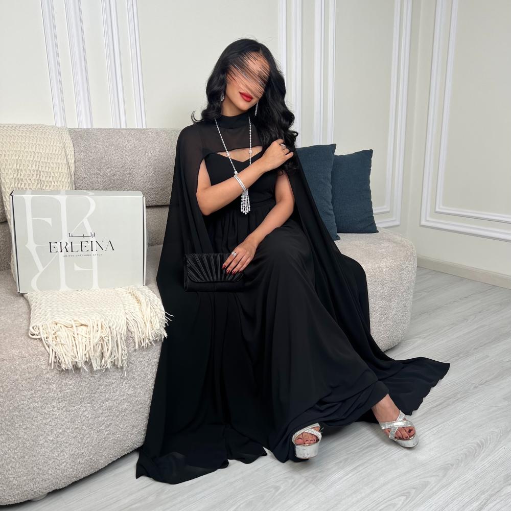 - فستان سهرة أسود منسوج من الشيفون الناعم ليضفي لمسة أنثوية تعكس جمالك بأناقة لا تُقاوم.